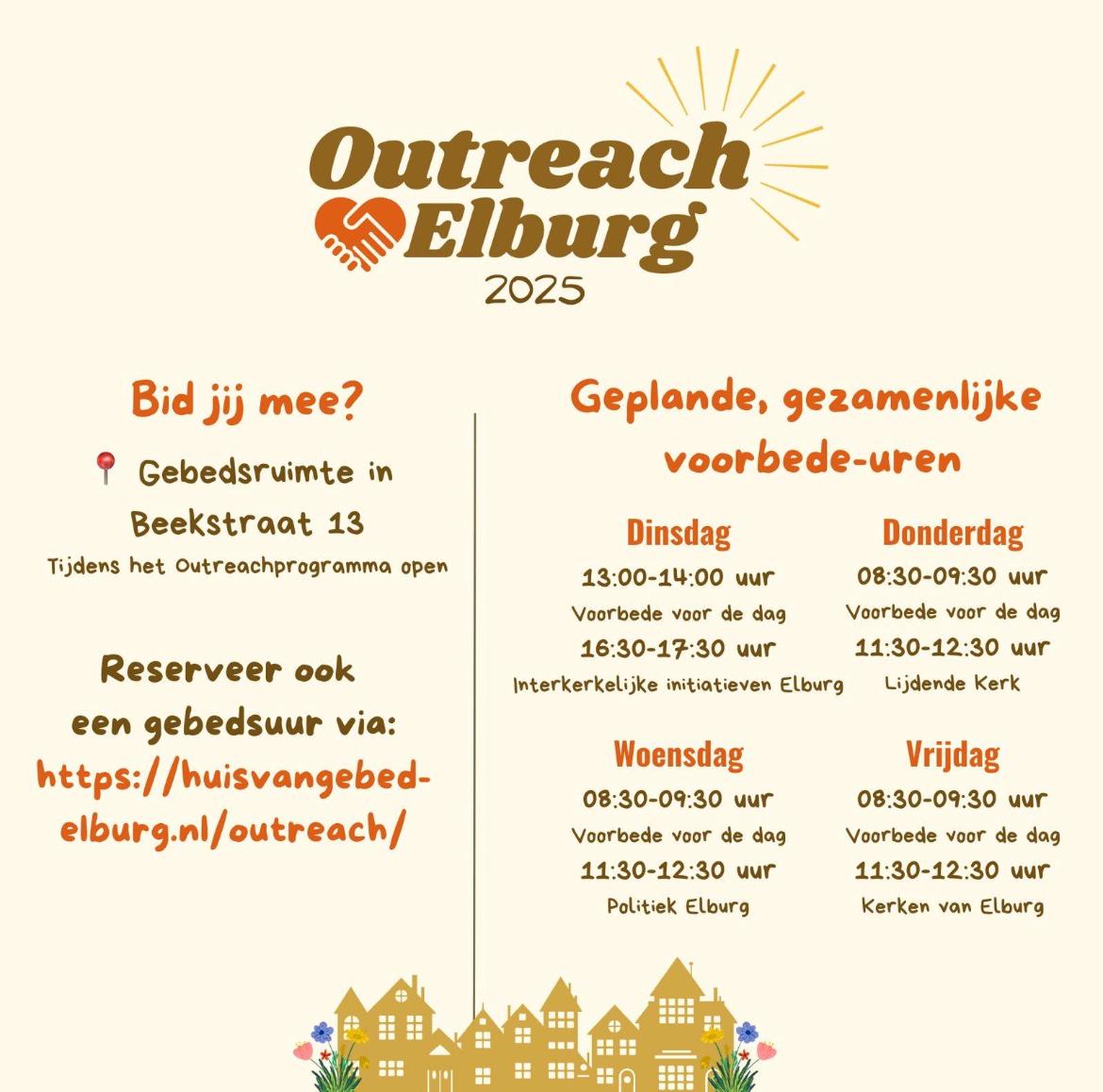 Van 14 tot 18 juli 2026 zal er weer een Outreach in Elburg plaatsvinden! Dit jaar is het thema: “Licht van de wereld!”. Tijdens de week zullen er verschillende diensten en activiteiten zijn waarin dit thema centraal staat. We nodigen je van harte uit om hieraan deel te nemen.